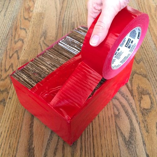 - Tightly taped up cardboard – best option, but more work…use these just like regular yoga blocks